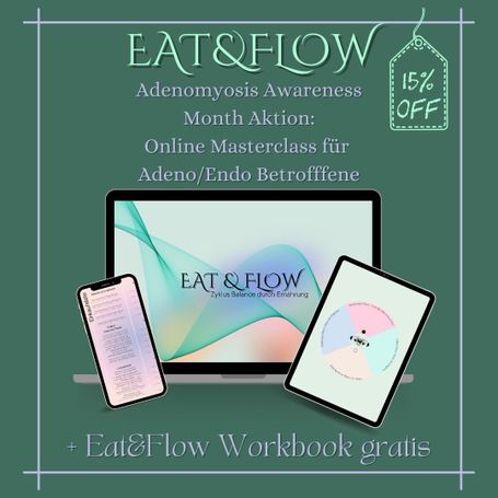 Nur zum Online Symposium im Adenomyose Awareness Month 2023 bietet Sarah von @sarahs.holisticmagic ihren Workshop "EAT & FLOW Masterclass - Zyklus Balance durch Ernährung" mit 15% Rabatt an. Nur Hier! Bei Anmeldung zu ihrem Workshop. Dann erhaltet ihr exclusiv den RabattCode zugesendet. Ein großartiges Angebot & unglaublich hilfreiches Thema bei Adenomyose, das Sarah exclusiv nur hier vom 01.04. bis 31.04.2023 zur Verfügung stellt.